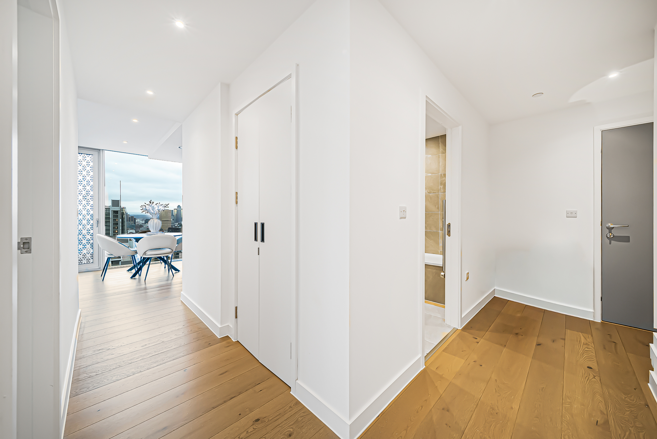 Step into a bright and welcoming entrance hall that leads you through to a spacious open‑plan living and dining area. Floor‑to‑ceiling windows flood the space with natural light while showcasing breathtaking cityscape views - the perfect backdrop to everyday living.