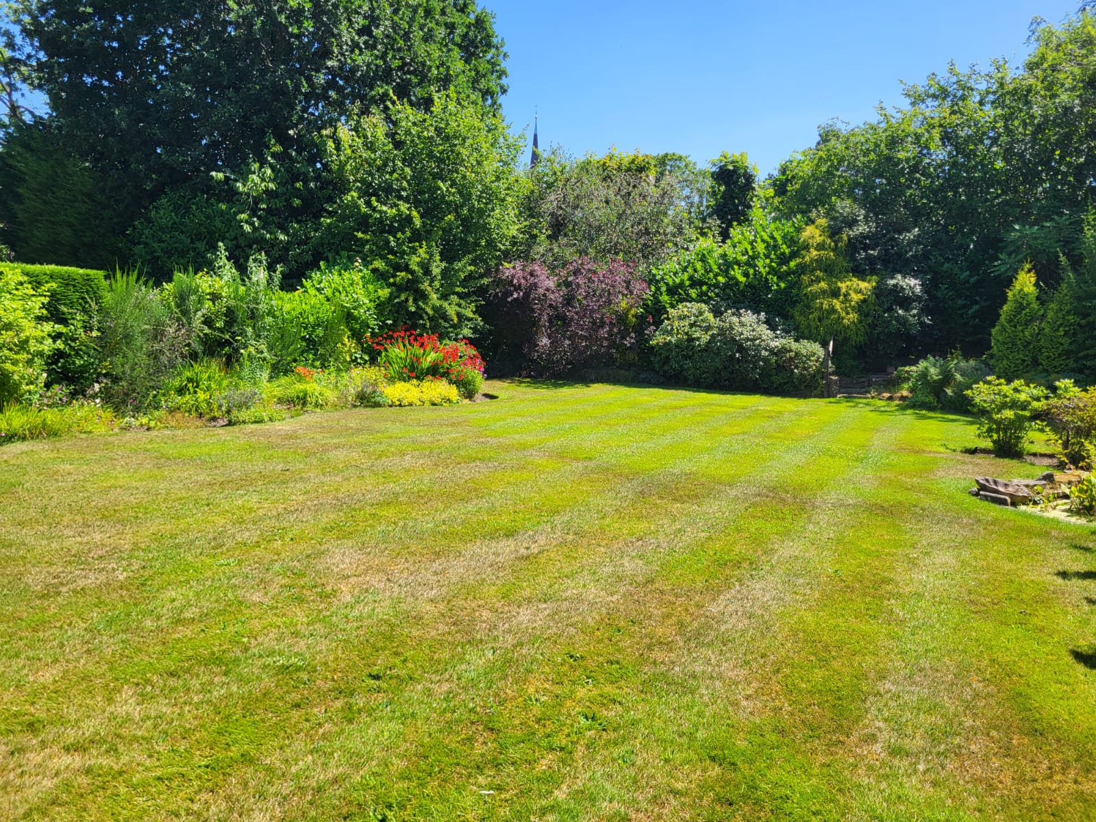 - Beautiful rear garden with lawn, patio and established flower beds.